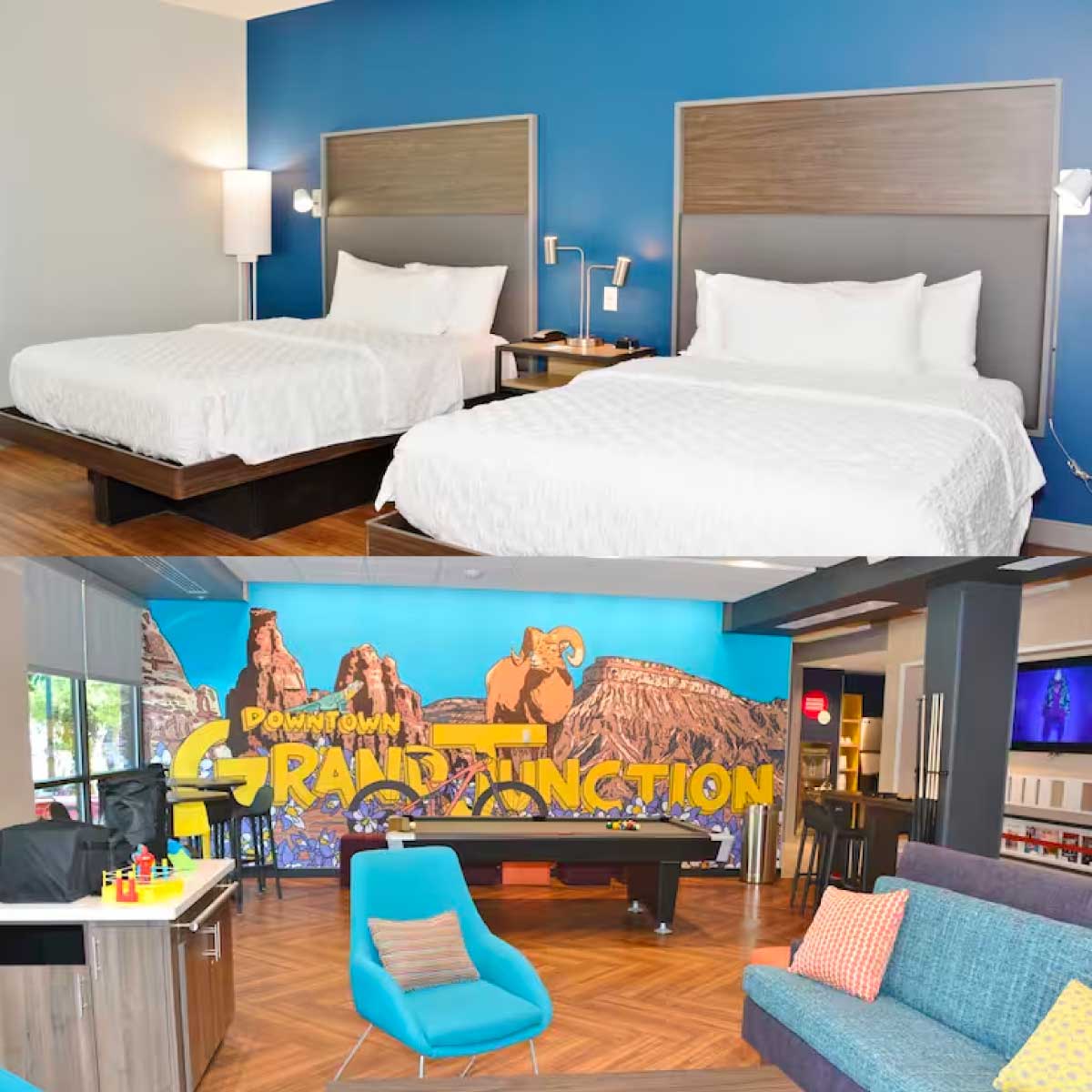 Moments from the Grand Junction Convention Center in downtown Grand Junction. Main Street is one block north where you’ll discover a long list of local restaurants, cafes, and bars within walking distance. Join them at SoCo Social House for craft beer, spirits, local wine & mocktails. They offer free hot breakfast and a 24/7 fitness center.